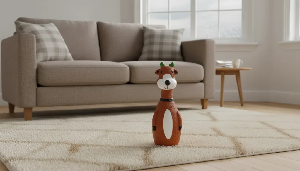 The latex material feels substantial for light play but won’t withstand determined destruction. These work brilliantly for supervised interactive sessions where you’re actively involved, especially fetch and tug games. The standing bases allow the characters to sit upright as decorations between play sessions, adding dual functionality during December. The squeakers remain intact within sealed rubber compartments, avoiding the common issue of punctured air bladders.